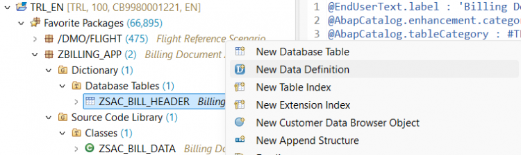 We’ll create a custom table for billing document header data and expose it as a managed RAP business object. This example demonstrates how to create a List Report and Object Page with full CRUD operations.