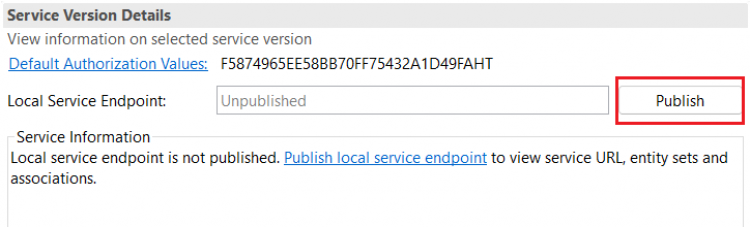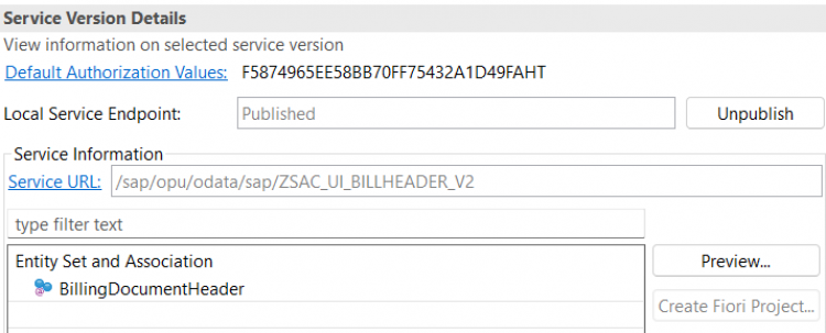 This may take few minutes. - Once the service is published, you should see the list of Entities which are exposed to test/preview. The list will contain our projection view which we exposed in the Service Definition.