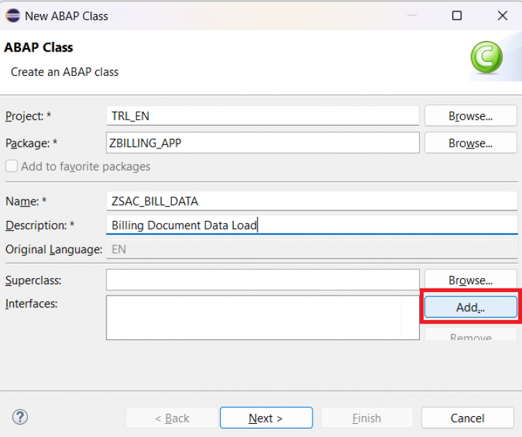 ZSAC_CL_LOAD_BILLDATA) and a description